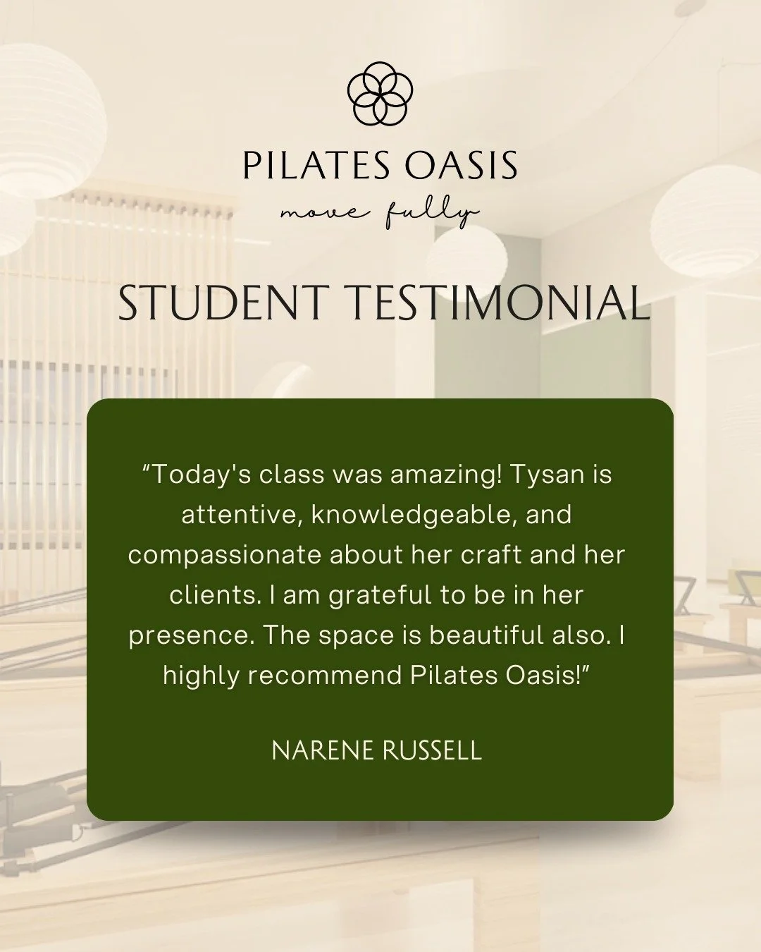 That's what we're doing at Pilates Oasis.